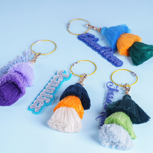 Owllaser 3D Personalized Name Charm for Handbag and Keychain with Colorful Tassel